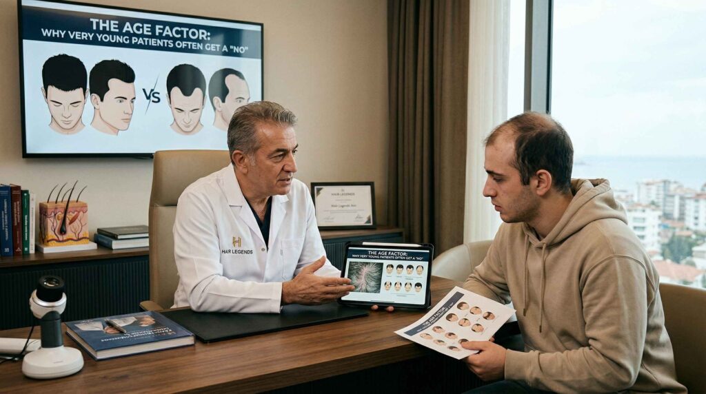 One of the most difficult ethical conversations involves young men in their early 20s who are experiencing rapid hair loss. While their distress is immense, performing a transplant too early is often a surgical mistake.